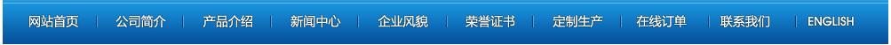 網(wǎng)站首頁 | 公司簡介 | 產(chǎn)品介紹 | 新聞中心 | 企業(yè)風貌 | 榮譽證書 | 定制產(chǎn)品 | 在線訂單 | 聯(lián)系我們 | ENGLISH 【后臺管理】
